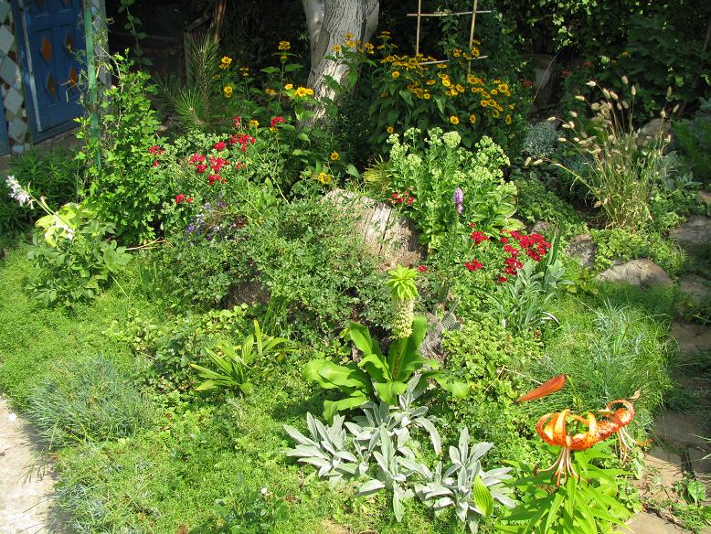 .Там разные почвопокровные травки, их постоянно приходится прореживать ,слишком агресивные ,ананас-это эукомис я его на зиму выкапываю ,всю зиму в перегородке (в коридоре) спит в торфе ,в начале марта в горшок с землей ,так,чтоб макушка на верху была,он прорастает и в мае в цветник,практически ничем не болеет и не прихотлив .