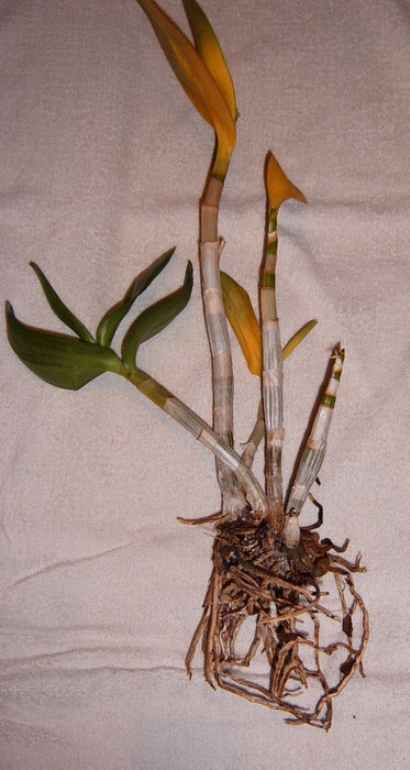 А подскажите пожалуйста почему у дендра у на новых ростах (уже выросших, но не дозревших) появились трещины вдоль бульб? Причем на всех? Это произошло еще до просушки. Сейчас денд еще на покое, но на старых (магазинных ростах появились почки размером в 3-4 мм), на новых, этого лета почки не проклюнулись... Новые росты, кстати, меньше и худее, чем магазинные...