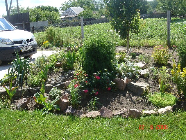 Возле пионов внизу виден можжевельник казацкий. Он вообще-то огромный. А справа - магония падуболистая, она внутри можжевельника растет. А сиреневое на пятой фотографии - это лаванда $:119