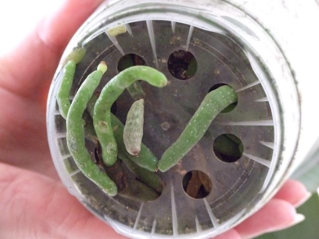Я их вовремя не заметила, и теперь шансов у меня нет.Таким же образом поступают и с корнями, вышедшими из дренажных отверстий на дне горшка, что бывает очень часто. Если этого не сделать, то при пересадке корни будут обломаны.