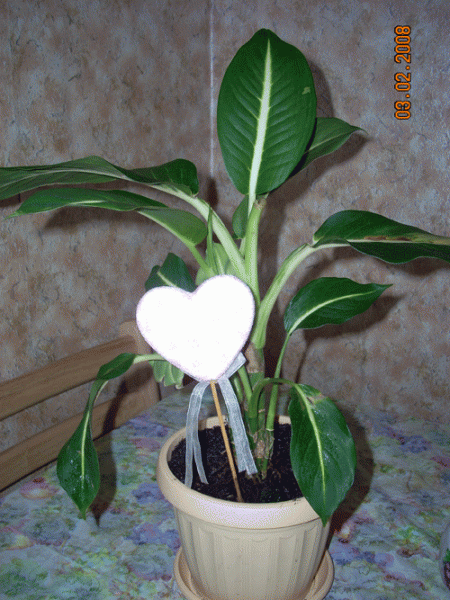 Ей уже 2,5 года, высота 2 метра, рядом детка. Длина листьев 28-35 см