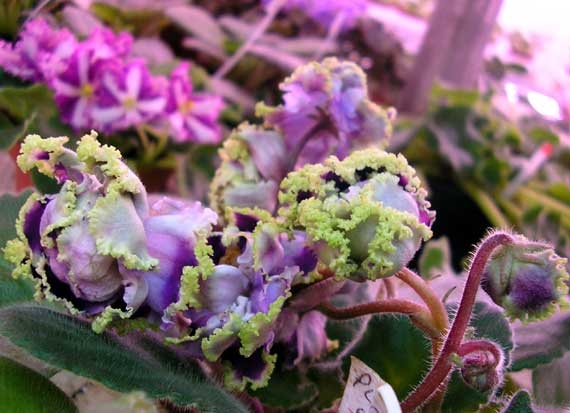 Фиалки, стрепсы и розы с зелёными кружевами.