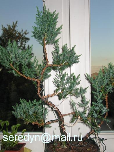 Особого опыта не имел, но в прошлом году решил "потренироваться" на Можжевельнике. Был обычный куст, очень пышный 50 см в высоту.