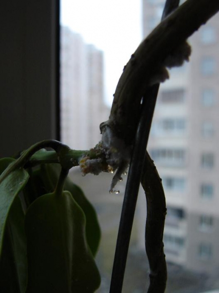 Я так до умопомрачения травила свои орхи, а червец все лезет и лезет. Обнаружила червеца в коре, потому полила и её Моспиланом.