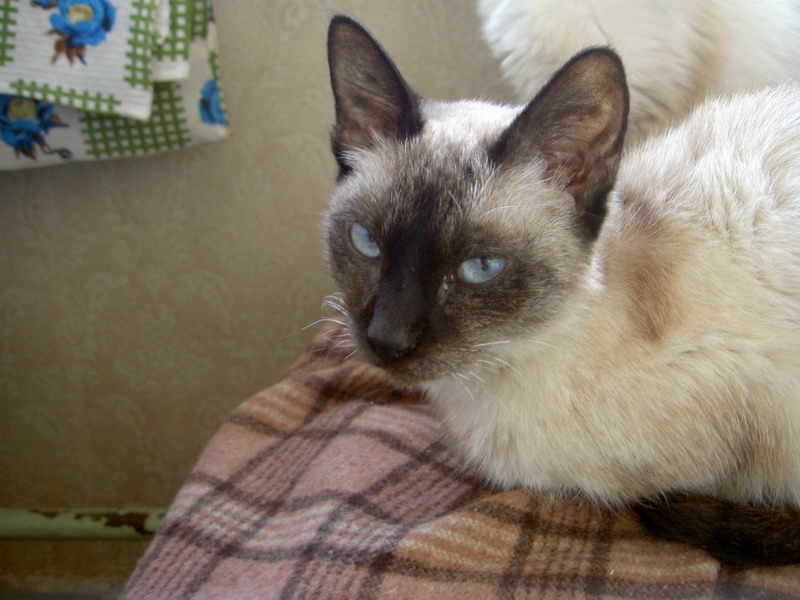 Ну Мисюсей нашей я уже хвасталась. И вот с пятницы у нас пополнение. На сайте помощи бездомным животным увидела я кошку. ПО окраске - как наша. Найдена была где-то под кучей строительного мусора. Вобщем, днем я эту тему почитала на форуме у них, а вечером мы уже принесли кошу...