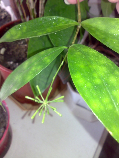 Кажется нет, но кончики подсыхают (хотя в квартире прохладно и влажно).тинка писал(а):А пятна, судя по всему ожог, потому и листы отмирали, сейчас у вас появляются такие пятна?