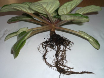 Когда корешки достигнут 5-6см в длину, растение пересаживаю в землю. Об этом подробно написала Лора в уроке "Сенполии: омоложение, "фитиль", ...". :lol: