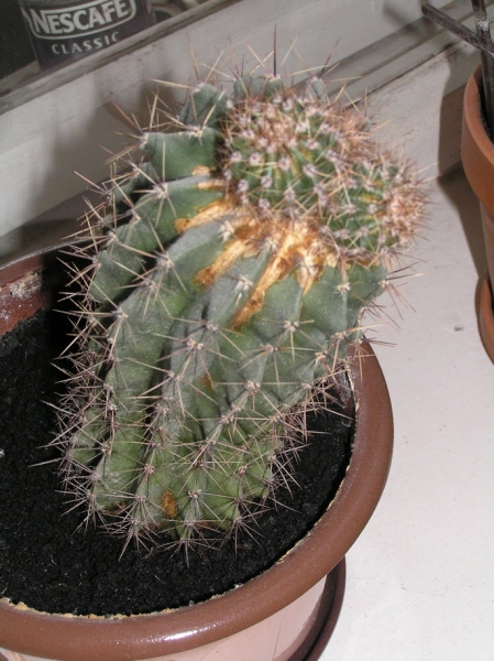 Я сняла деток с верхушки. То место, на котором они росли живое, тоесть это получается, что от неправильного ухода кактус покрывается корочкой $:014