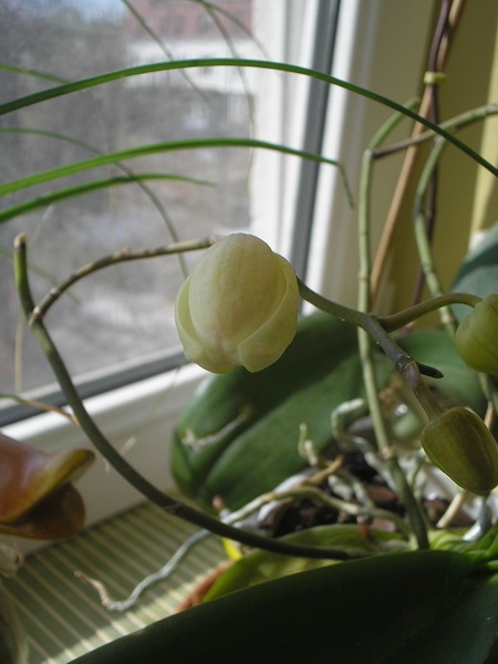 Наконец, последнее. Новелти-фаленопсис должен иметь короткий цветонос. Нет ничего непригляднее зрелища длинного оголенного цветоноса с небольших числом цветков на самом конце. Среднее расстояние от начала цветоноса до первого бутона у новелти-фаленопсиса составляет 10-15 см. Ультракороткий цветонос характеризуется расстоянием до 10 см, а вытянутый - 15-20 см. Как правило, вытянутым цветоносом обладают сорта с короткой родословной, например, Phal.Golden Buddha, Phal.Penang и другие. С каждым поколением селекция, если она ведется в направлении укорачивания цветоноса, снижает указанное расстояние. В отличие от "срезочного" цветоноса стандартных фаленопсисов, цветонос новелти может быть назван "фиалочным".