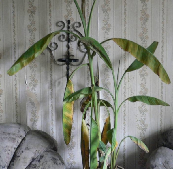 Привет всем! Моему банану 3 года, уже растет детка. Плодов не ожидаю. Для этого нужно создать естественные условия: очень светло, очень тепло и очень влажно! Но тем не менее я его очень люблю. На мой взгляд - это совсем безпроблемное растение. Места много не занимает (он карлик-) радует глаз, словом - одни положительные эмоции.