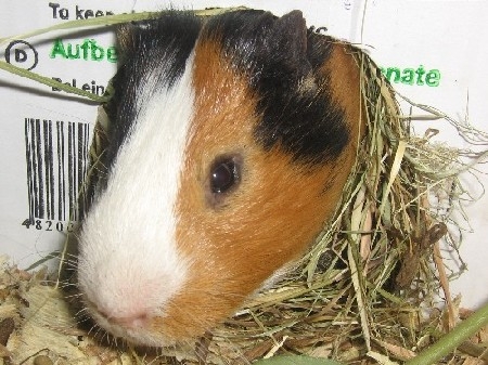 Поставили Мишке новый домик. Он ему очень понравился. Сразу же забрался в него, дверь сеном забил и затих на целый день. Видимо проникся надписями "NEW" и "Срок хранения 24 месяца." Обмозговывал, выдержит ли он 24 месяца не жрать свой дом.