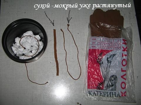 Зачем шнурки?Мы и так акждый день колготы рвём,вот можно их и использовать. Если шнурок в диаметре 0,5см,то это очень толстый,я режу колготки 0,5-0,7мм,как показано на фото выше,чем толще фитиль тем больше будет тянуть воды,если земля немного плотнее можно шнурок резать ну буквально на пару мм больше,при посадке растения я бы советовала намочить,на фото выше также показано,какой был сухой и после мокрый.Жасмин писал(а): У меня еще один вопрос: а шнурки для ботинок можно использовать в качестве фитилей?