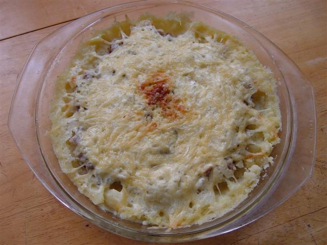 3. Немного любого мяса, пара луковиц, картошка, порезанная как для жарки, майонез, немного тертого сыра. Все сложить в плоскую форму слоями, запекать в духовке.