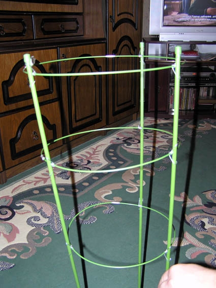 У меня много обыкновенных деревянных палочек для подвязывания. Кольца разбираются и прекрасно держатся на более тонких палочках.