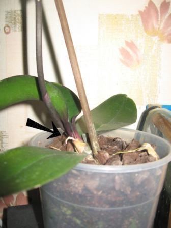 как и чем лучше обработать корни, чтобы было видно где обрезать и что делать с цветоносом?