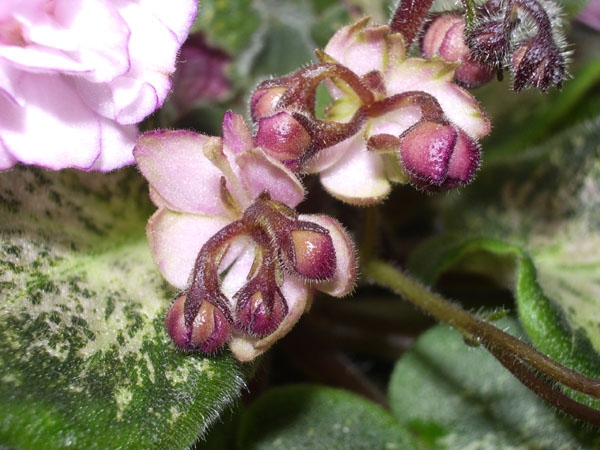А у меня была такая фиалка :) У нее были в прямом смысле двухярусные цветы - розовые махровые помпончики, небольшие, но много. Сначала я ее держала за необычность, но очень скоро устала - ко времени, когда раскрывался внутренний цветок, внешний уже увядал и в целом цветы смотрелись очень несвеже. Как увядающий георгин, у которого наружные "лепестки" порыжели и обвисли... Жалко сорт, очень красивый был.