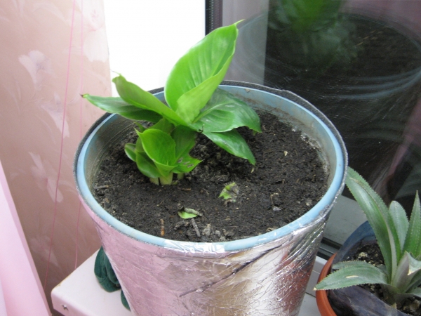 Главное не перезалейте, маленький банан может легко сгнить от избытка влаги и слабой корневой.
