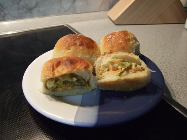 Начинка была вся готовая- капуста потушена с луком, морковкой и потом добавлено вареное яйцо.