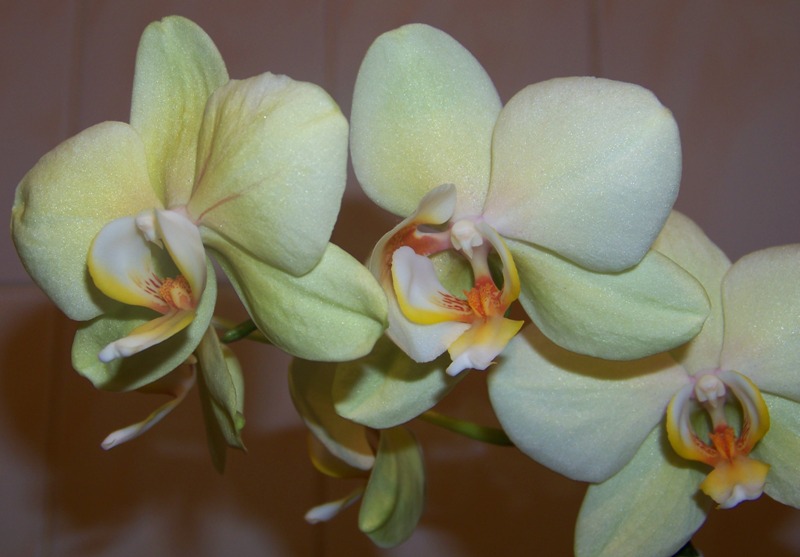 Куплен весной, цветущим, малиновым, летом процвел повторно малиновым на старых цветоносах, на кончиках образовывались новые бутоны, это зимнее цветение, с совершенно неожиданной окраской, фал гибридный голландец из Эдельвейса (одесского).